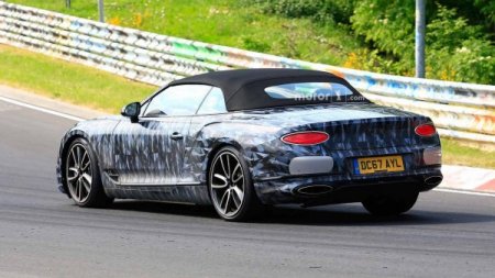 Bentley разработал новейшие Continental GT и GTC одновременно, но решил сначала выпустить купе. Теперь открытая модель приближается к презентации, и эти шпионские снимки были сняты во время тестирования новинки на Нюрбургринге.