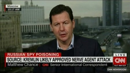 Вновь приветствую всех. Власти Великобритании считают, что у них есть улика по делу о нападении с применением химического оружия на бывшего российского шпиона, которая указывает прямо на Кремль. На прошлой неделе власти установили, что, по их мнению, кто бы ни отравил Сергея и Юлию Скрипаль, он оставил нервно-паралитическое вещество у входной двери дома Скрипалей. Источники, которые были проинформированы о ходе расследования, сейчас рассказывают CNN, что метод, использовавшийся при покушении на убийство сбежавшего агента, был слишком изощрённым и, скорее всего, требовал одобрения Кремля. Мы получим сейчас последнюю информацию от Мэтью Чанса из Москвы. Итак, Мэтью, какова была реакция в Москве?