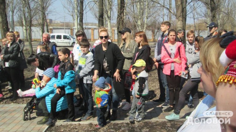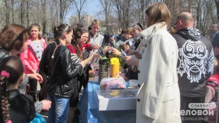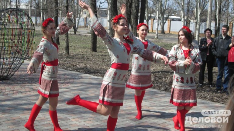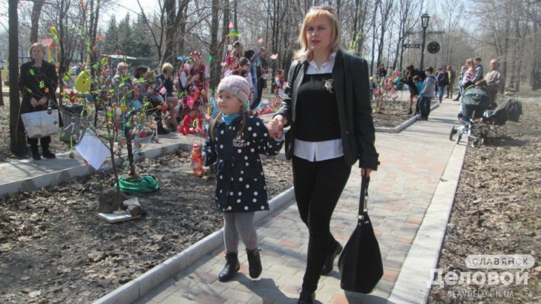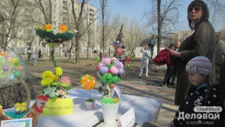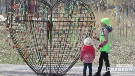 В Славянске (Донецкая обл.) накануне праздника Пасхи в сквере «Мечта» расцвел «Писанковий сад».